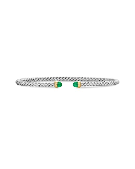 David Yurman's artistic signature, Cable began as a bracelet that he hand-twisted from 50 feet of wire. For the past 30 years, he has evolved the twisted helix into a myriad of designs. Sterling silver with 14-karat yellow gold Bracelet 2.6mm Nitinol core to provide flex movement Made in USA ABOUT THE BRAND David, a sculptor, and his wife, Sybil, a painter, launched their innovative jewelry brand in 1980 in New York City. Since then, the American design house has pioneered cutting-edge collections-from its iconic combination of sterling silver and diamonds to signature pinky rings. Today, with their son Evan, the Yurmans continue to deliver timeless pieces inspired by nature, art, ancient symbols and Manhattan's stunning architecture. Lsd Jewelry - David Yurman > David Yurman > Saks Fifth Avenue. David Yurman. Color: Emerald. Size: Medium.
