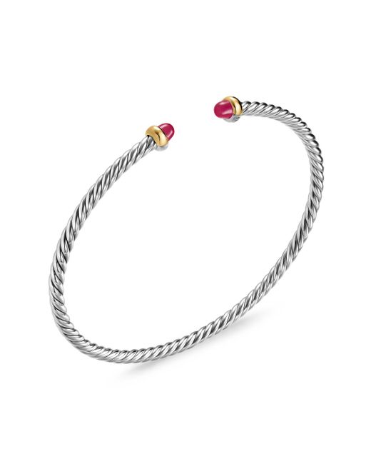 David Yurman's artistic signature, Cable began as a bracelet that he hand-twisted from 50 feet of wire. For the past 30 years, he has evolved the twisted helix into a myriad of designs. Sterling silver with 14-karat yellow gold Bracelet 2.6mm Nitinol core to provide flex movement Made in USA ABOUT THE BRAND David, a sculptor, and his wife, Sybil, a painter, launched their innovative jewelry brand in 1980 in New York City. Since then, the American design house has pioneered cutting-edge collections-from its iconic combination of sterling silver and diamonds to signature pinky rings. Today, with their son Evan, the Yurmans continue to deliver timeless pieces inspired by nature, art, ancient symbols and Manhattan's stunning architecture. Lsd Jewelry - David Yurman > David Yurman > Saks Fifth Avenue. David Yurman. Color: Ruby. Size: Medium.