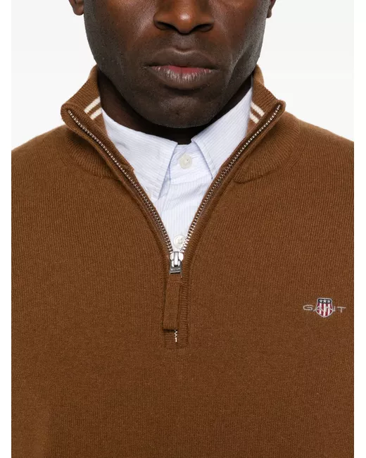 brown zip fastening long sleeves logo embroidery ribbed hem