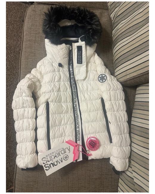 This premium bomber is the perfect year round ski jacket, designed with reflective Superdry adjustable popper braces. This jacket has a foldaway hood with detachable faux fur trim, bungee cord adjusters and a reflective Superdry logo.
