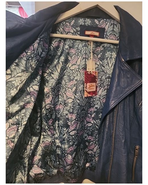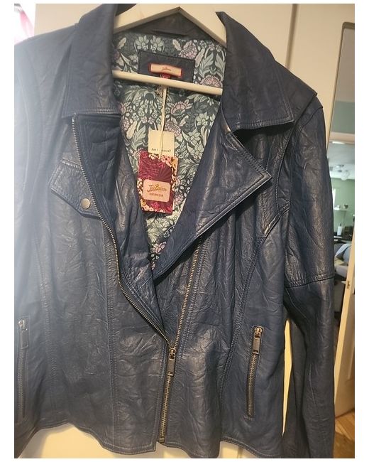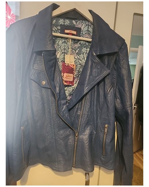 Leather Jacket Black Blazer Collared Button Up Dark Navy UK 14
