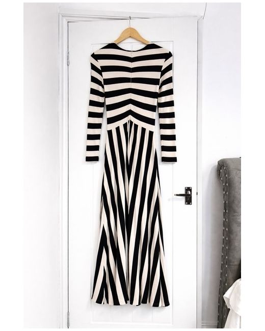 Maria Dark navy cream Graphic striped midi dress Sz 8 10 Bnwot da Donna di colore Beige