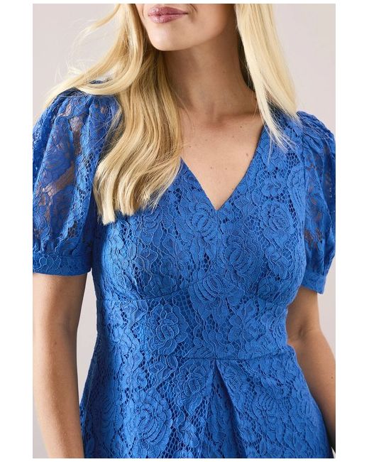 The fitted waistline with pleating detail enhances your natural shape, flowing gracefully into a flattering midi length that's ideal for formal occasions. WALLIS Petite Lace V Neck Tea Midi Dress.
