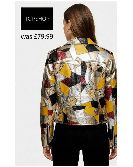 Patchwork Metallic Biker Jacket 14 7A da Women di colore Argento