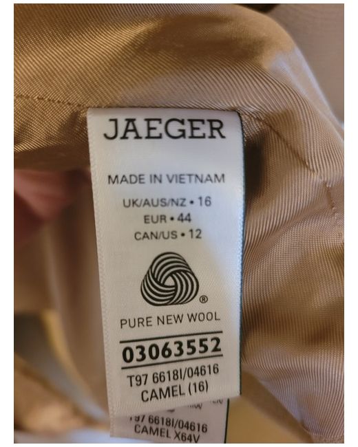 This Jaeger Women's Beige Wool Casual Blazer is a stylish and versatile addition to any woman's wardrobe. Made from high-quality wool, this blazer features a classic design suitable for a casual or more formal look. Size 16 on tag but comes up large/Oversized - roughly size 18