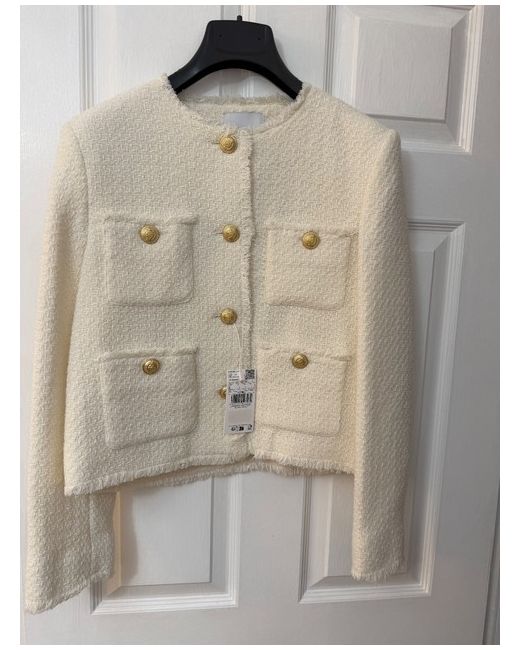 Mango Cream Tweed Jacket size L. Mango Cream Tweed Jacket size L i’d say it is size 12. New with tags.