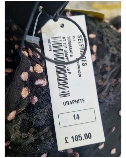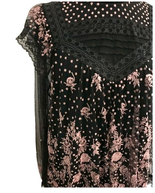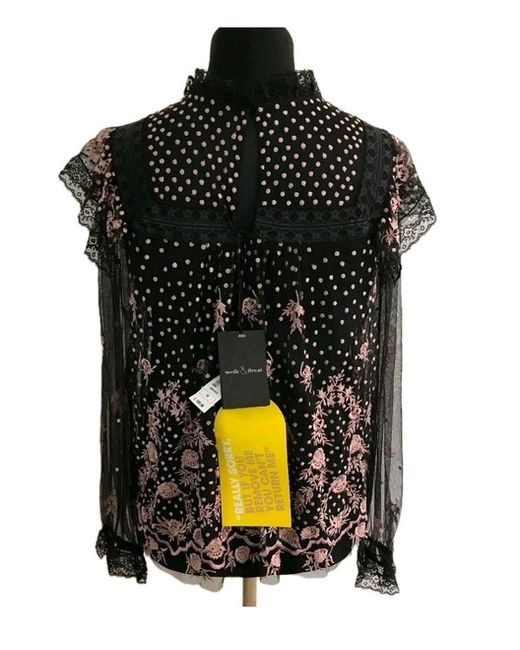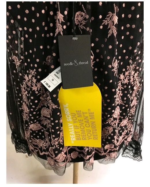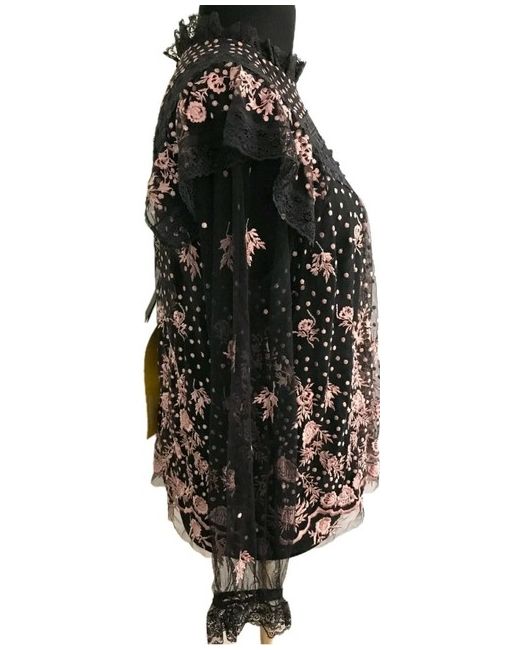 Needle & Thread tulle top Exposed button-fastening at back Round-neck, ruffled neckline, long sleeves, ruffled panels, all-over floral embroidery, fully lined 100% polyester; lining 100% polyester Dry clean True to size