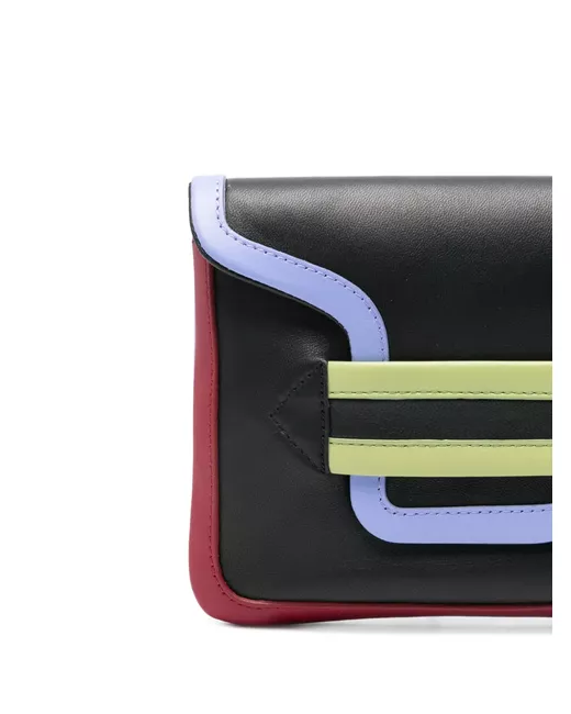 black, green and blue colourblock design shoulder strap internal slip pocket flap top fastening