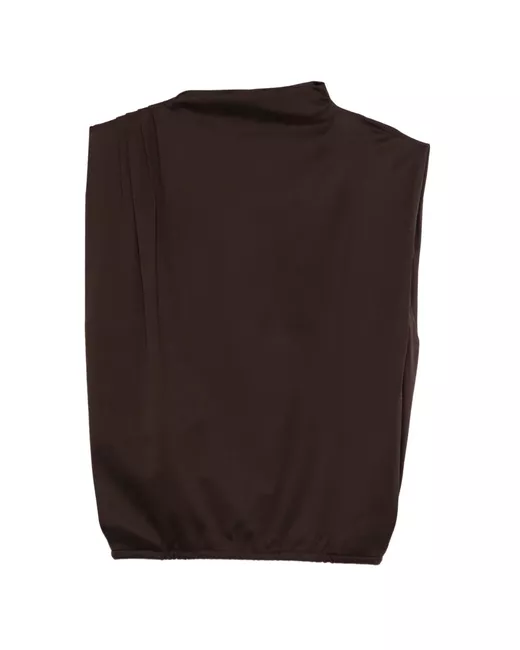 dark brown draped design sleeveless mock neck elasticated hem