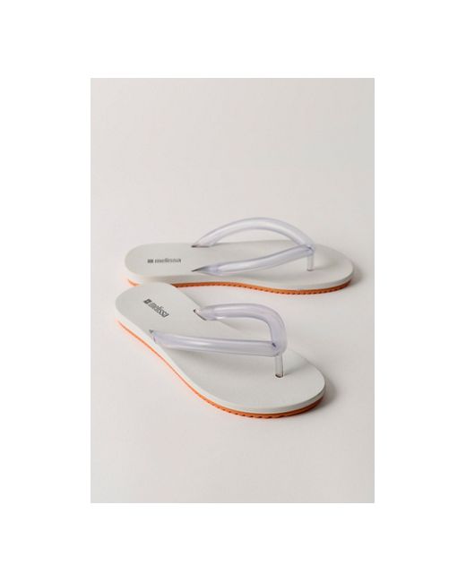Simple, versatile, and so fun, these flip flops from Melissa feature air bubble thong straps, a comfortable insole, and a textured outsole for a beach-ready pair. * PVC air bubble uppers * Backless flip flop * Water-resistant design * Signature Melissa bubblegum scent Melissa Airflow Flip Flops at Free People in White/Orange, Size: US 6