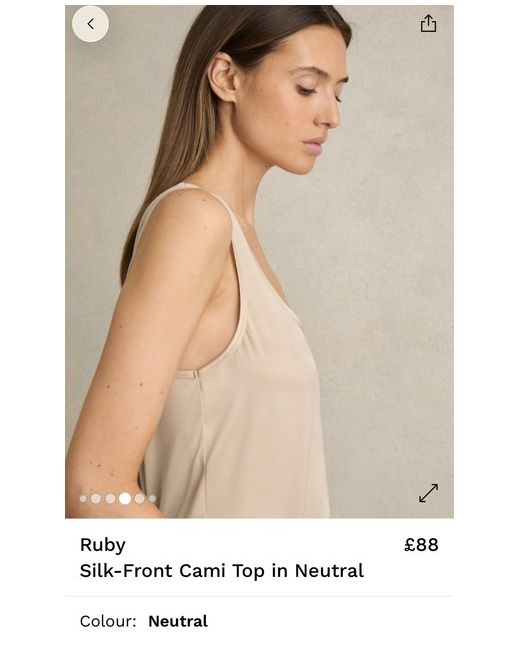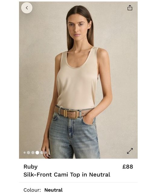 Reiss Top Ruby Silk Front Cami in Neutral Size M