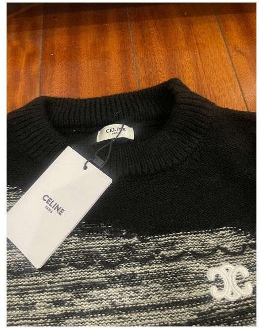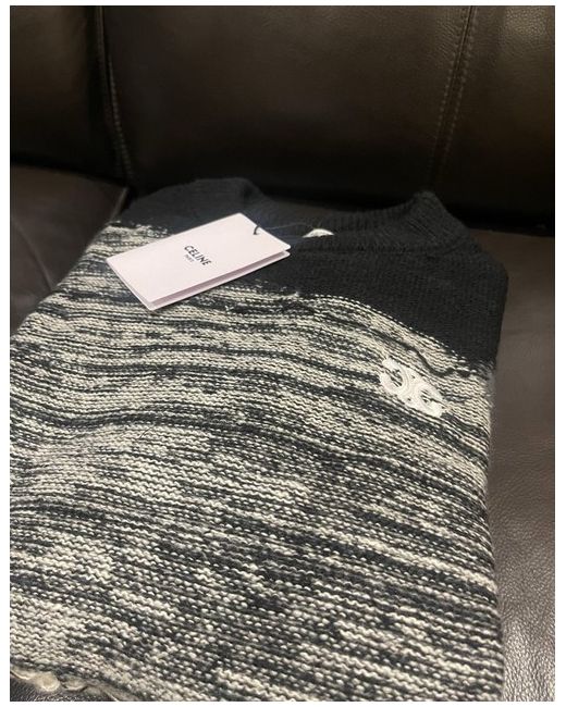 The Celine wool oversized pullover sweater in size S is a stylish and versatile addition to any woman's wardrobe. Made from high-quality wool and featuring a knit fabric type, this jumper offers both comfort and warmth. The round neckline and long sleeves make it perfect for casual occasions, while the oversized fit adds a trendy and relaxed vibe to the overall look. Available in a classic blue colour, this pullover sweater from the renowned brand CELINE is sure to become a go-to piece for any fashion-forward individual. bust 110cm, length 71cm.
