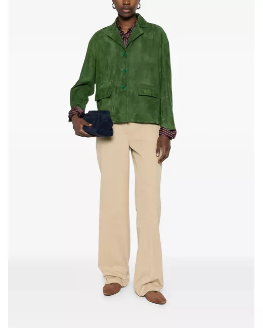 green suede button fastening flap pockets notched lapel