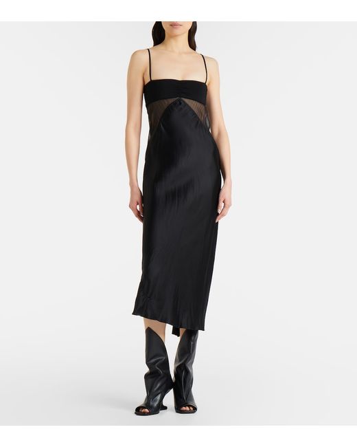 Materiale: 100% cupro. Trattamento: lavaggio a mano. Made in Italy. Colore del designer: Ivory Glow. Materiale II: 96% viscosa, 4% elastan. Dettagli: 100% seta. Spalline regolabili. Orlo: asimmetrico.