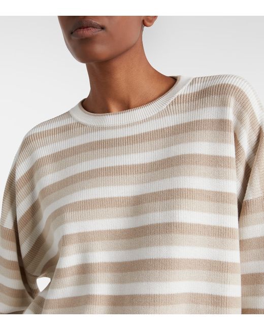 Materiale: 100% cotone. Trattamento: lavaggio a mano. Made in Italy. Colore del designer: Panama+Conchiglia+Biscotto. Collo: scollo rotondo. Polsini: a coste. Orlo: a coste. Cotone.