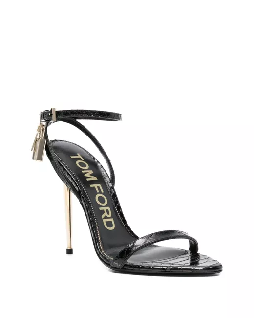 black crocodile effect ankle strap padlock detail gold-tone hardware leather sole