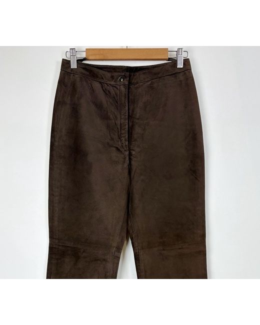 Brand new with tags vintage suede trousers by Patsy Seddon for Phase Eight. Crafted from genuine brown suede that is soft and supple, with a flattering high waist and straight leg cut. Finished with a classic zip and button closure. A timeless, high-quality vintage piece perfect for elevated everyday wear or statement styling. Approx measurements ā Waist ā 14 inches across Rise ā 10.5 inches Inside leg ā 33 inches (All measurements taken laid flat) From a smoke and pet free home Items dispatched with Royal Mail