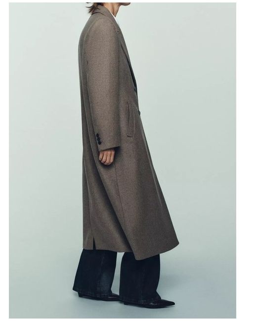 Dark Mink Wool Blend Long Double-Breasted Coat Xl