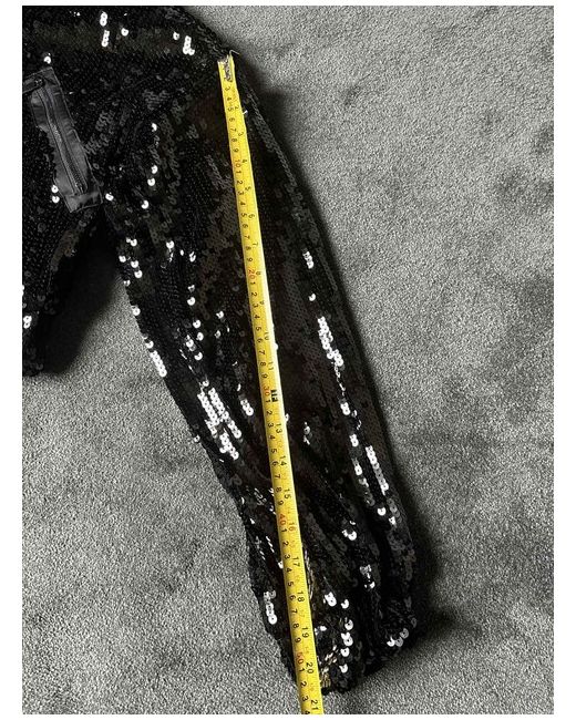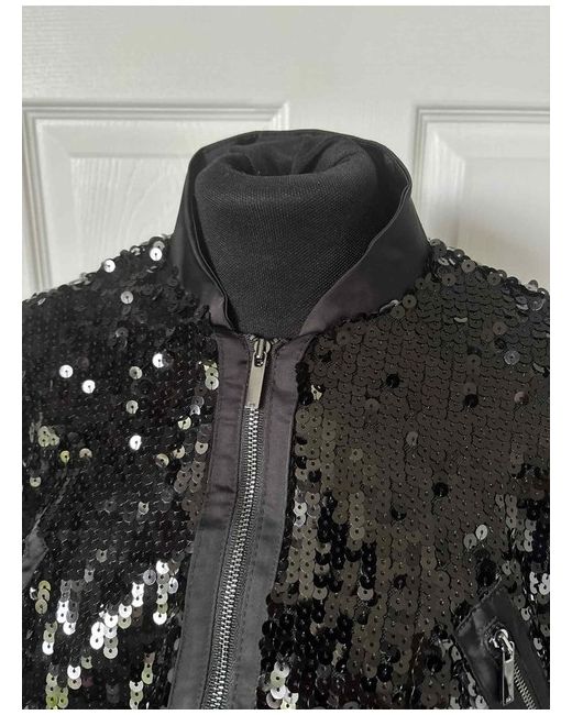 The Karen Millen Sequin Bomber Jacket in black is a stylish and versatile addition to any woman's wardrobe. Made from polyester, this jacket features sequin accents that add a touch of glamour to the casual design. Perfect for the autumn season, this size 8 jacket is designed to be dry cleaned only to maintain its quality. With its regular fit and bomber jacket style, this Karen Millen piece is both fashionable and practical for everyday wear.