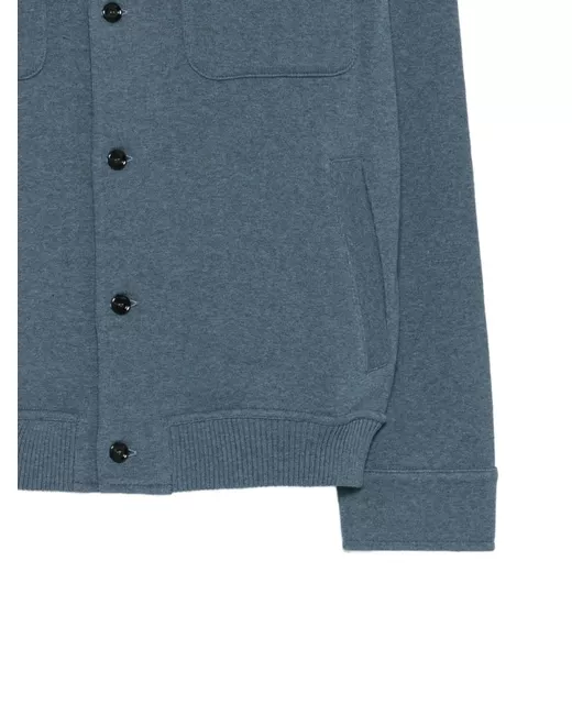 blue cotton button fastening chest pockets ribbed hem buttoned cuffs