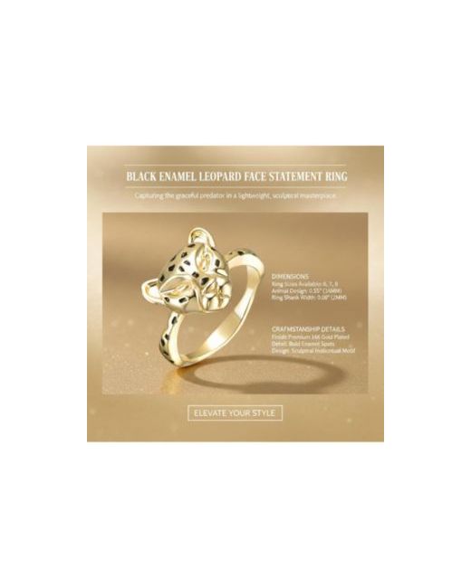 Embrace your inner power with this stunning 14K Gold Plated Leopard Face Ring, where fierce spirit meets high-fashion finesse. Meticulously sculpted to capture the wild elegance of the jungle s most graceful predator, this statement piece features striking black enamel accents that bring the leopard s gaze and iconic spots to life. The lustrous 14K Gold Plated provides a radiant glow, while the artistic openwork design ensures a lightweight, comfortable fit for all-day wear. Designed for the visionary who views the world as her runway, this ring captures the essence of luxury and the thrill of the wild, transforming every gesture into a moment of pure, cinematic elegance.⢠Sculptural Grandeur Instinctual Grace⢠Bold Enamel Contrast⢠Luminous 14K Gold Plated Finish⢠Rachel Glauber Fashion-Forward Trendsetter