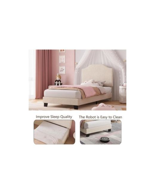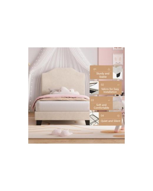 Comfortable And Stylish The pink bed frame combines modern corduroy material with a vertical headboard design, offering a sleek and stylish aesthetic. The comfortable corduroy and soft sponge wrap the entire frame, enhancing any bedroom's elegance. This kids bed provides boys and girls with a soft and peaceful sleep experience that caters to both comfort and style, making it ideal for a girls bed or a bed for girls. Strong And Reliable Featuring a sturdy metal frame and center support legs, this twin bed frame offers solid support. The amalgamation of a high-grade metal structure and high-density wood slats results in a visually appealing and sturdy design. This ensures that your kids bed frame remains attractive and robust, meeting various needs over time, whether it's for twin bed frames for girls or general twin bed frames.adjustable Headboard Height This twin size bed frame allows for headboard height adjustments, facilitating alignment with your mattress. The