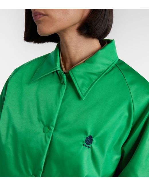 Materiale: 100% poliammide (riciclata). Trattamento: lavaggio a mano. Made in Italy. Colore del designer: Verde. Fodera: 100% poliammide (riciclata). Imbottitura: 100% poliestere (riciclato). Chiusura: chiusura con bottoni a pressione. Tasche: tasche applicate. Polsini: a coste.