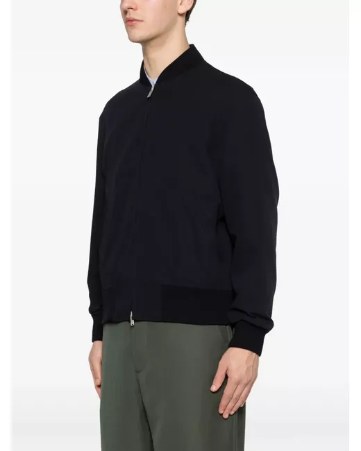 navy blue ribbed trims zip fastening welt pockets long sleeves