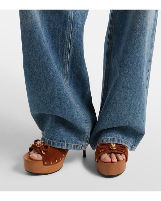 Upper: calf leather (suede). Lining: leather. Sole: wooden insole, rubber sole. Toe shape: round open toe. Made in Spain. Includes: shoe box. Designer color name: Spice Brown - Versace Gold. Hardware color: gold.
