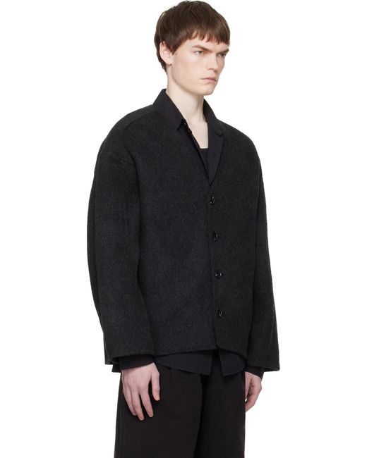 Double-faced brushed wool- and cashmere-blend flannel jacket. · Y-neck · Button closure · Dropped shoulders Supplier color: Black