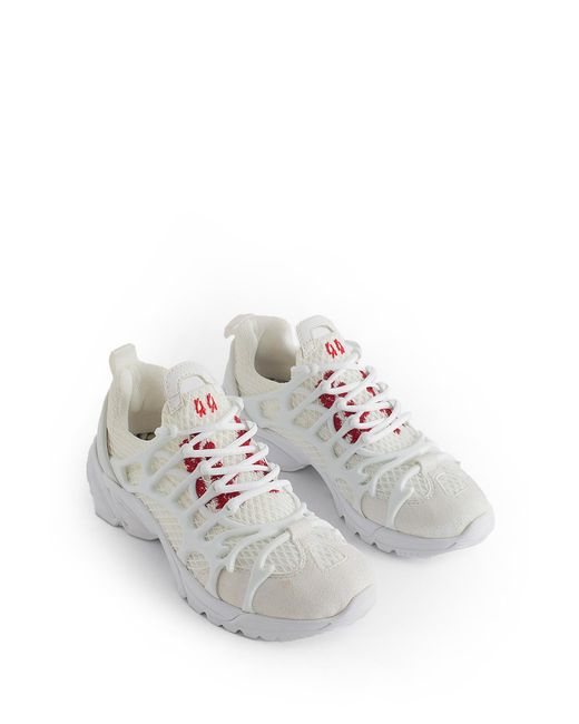 Runway Style White Mesh, Suede And Rubber Front And Back Pull Tabs Lace Closure Logo Details Rubber Sole