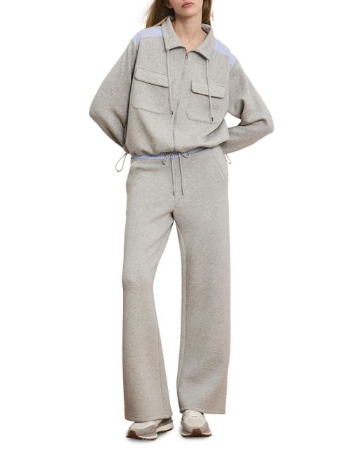 This Stellant jacket from Veronica Beard features a heathered jersey body with a contrast striped yoke. A spread collar, chest flap-patch pockets, and front zip closure lend a sporty feel to this layer. Spread collar, drawstrings Long sleeves, elasticized cuffs Chest flap patch pockets Drawstring hem Front zip closure 77% rayon/14% polyester/9% elastane Machine wash Imported SIZE & FIT About 21" from shoulder to hem Model measurements: 5'10" tall Model is wearing a US size Small ABOUT THE BRAND Veronica Beard was founded by sisters-in-law Veronica Miele Beard and Veronica Swanson Beard in 2010. With a strong belief in enduring personal style, the co-designers focus on elevated everyday pieces, like their signature structured blazers and easy-chic dresses. Contemporary Sportswear - Denim And Bottoms > Veronica Beard > Saks Fifth Avenue. Veronica Beard. Color: Light Heather Grey. Size: XS.