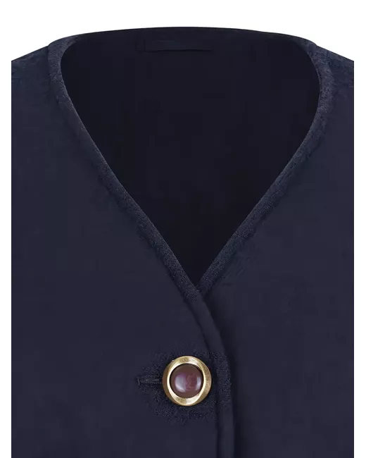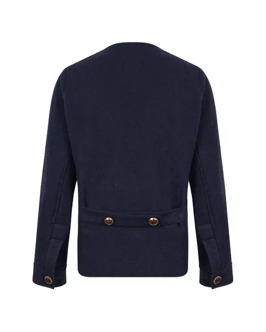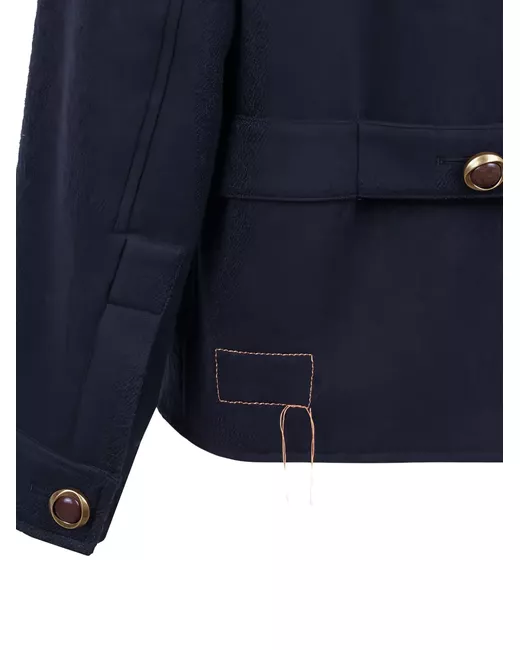navy blue button fastening V-neck patch pockets buttoned cuffs decorative stitching