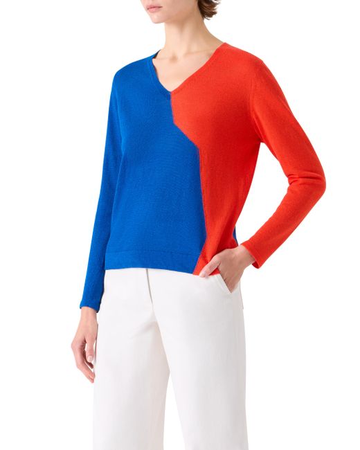 Made of a lightweight linen and cotton blend, this Akris sweater is designed with a V-neck, dropped shoulders, and a split-dyed finish. V-neck Long sleeves Pulls over 70% linen/30% cotton Dry clean Imported SIZE & FIT Model measurements: 5'10" tall Model is wearing a US size 4 ABOUT THE BRAND Founded in 1922 in St. Gallen, Switzerland, the name Akris was derived from founder Alice-Kriemler Schoch's initials. Akris punto was later launched in 1995 with a relaxed, understated mindset. With a range of contemporary looks including architectural silhouettes, graphic prints and colorblocking, each piece is finished with an athletic edge. Advanced European - Akris > Akris > Saks Fifth Avenue. Akris. Color: Lapis Blue Vermillion. Size: 6.