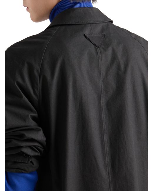 Regular fit Shirt-style collar Straight sleeves Button closure Wide welt pockets Straight cuffs Regular shoulder Back vent Unlined garment Fabric triangle logo on the back Imported 100% Cotton. Lsd Rtw - Prada Rtw > Prada > Saks Fifth Avenue. Prada. Color: Black. Size: 44.
