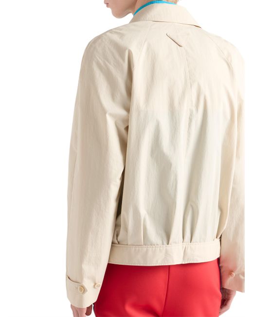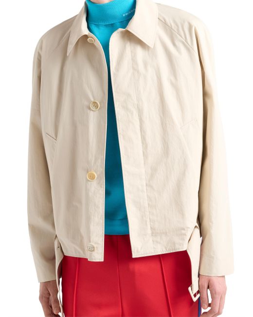 Regular fit Shirt-style collar Raglan sleeve Button closure Wide welt pockets Cuffs with strap and button Regular shoulder Straight hem Partially lined garment Fabric triangle logo Imported 100% Cotton. Lsd Rtw - Prada Rtw > Prada > Saks Fifth Avenue. Prada. Color: Beige Khaki. Size: 38.