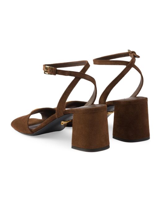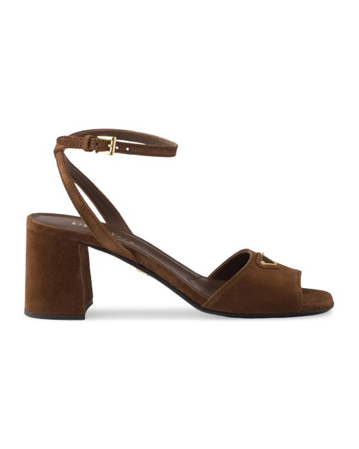 Upper with ankle strap and logo-engraved metal buckle Enameled metal triangle logo Leather and rubber sole with metal lettering logo Suede-covered heel, height 65 mm / 2.6'' Imported 100% Calf Leather. Lsd Rtw - Prada Rtw > Prada > Saks Fifth Avenue. Prada. Color: Brown. Size: 7.