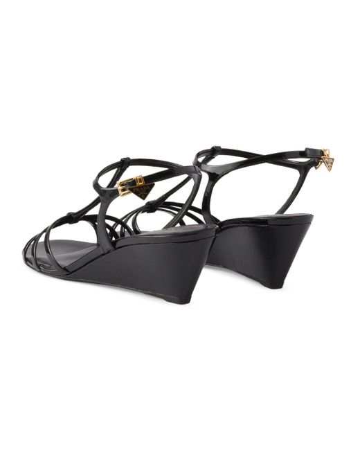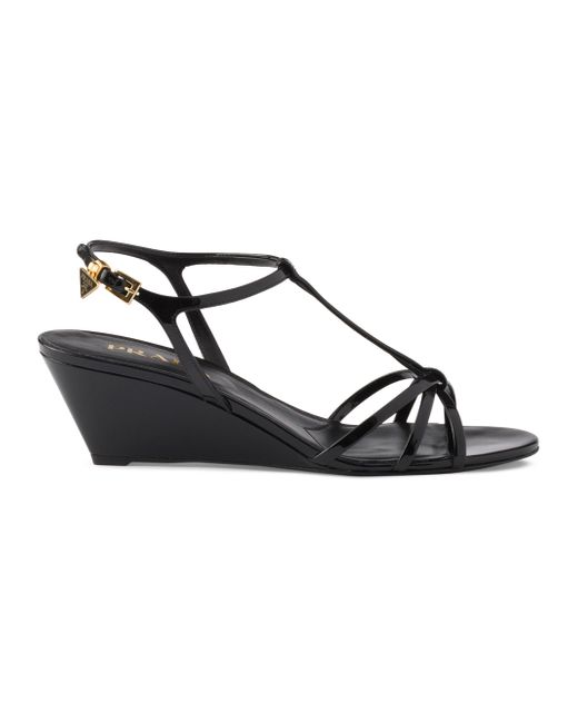 Upper with logo-engraved metal buckle Enameled metal triangle logo Leather and rubber monoblock sole with hot-stamped logo Leather-covered wedge heel, height 55 mm / 2.2'' Imported 100% Calf Leather. Lsd Rtw - Prada Rtw > Prada > Saks Fifth Avenue. Prada. Color: Black. Size: 9.