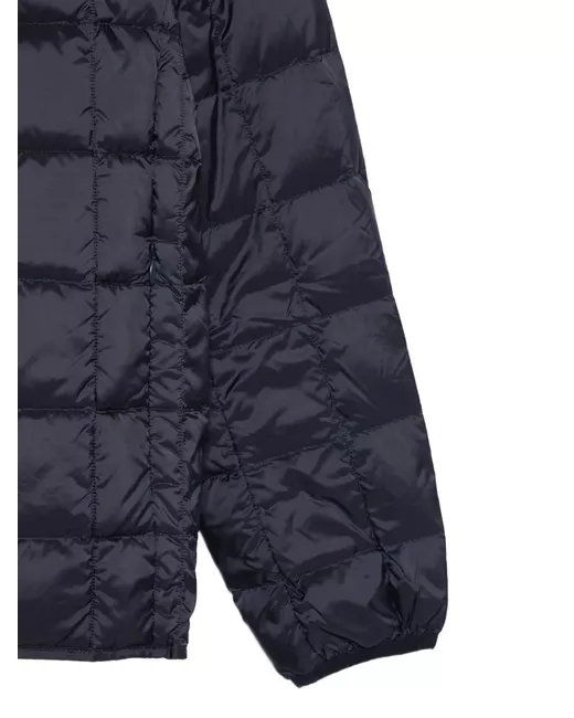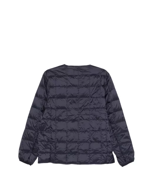 navy blue quilted snap fastening round neck long sleeves welt pockets