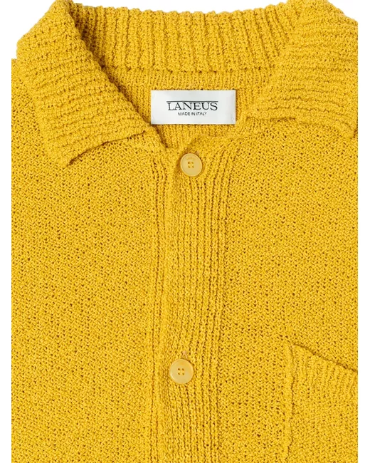 giallo taschino sul petto maniche corte chiusura a bottoni design lavorato a maglia scollo con colletto