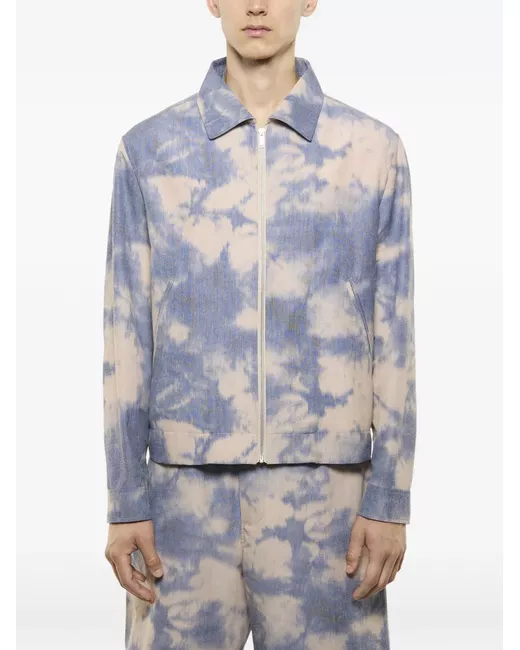 blue tie-dye pattern zip fastening classic collar long sleeves welt pockets