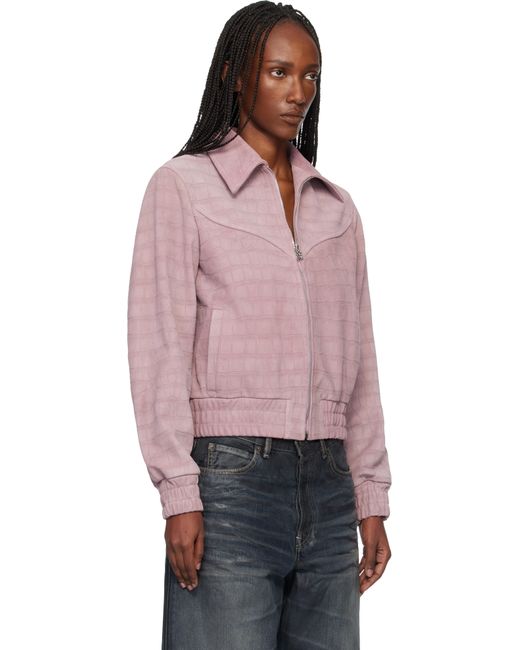 Croc-embossed suede jacket. · Spread collar · Zip closure · Welt pockets at front · Elasticized hem and cuffs · Welt pockets at interior · Full satin lining Supplier color: Dusk