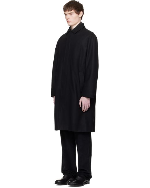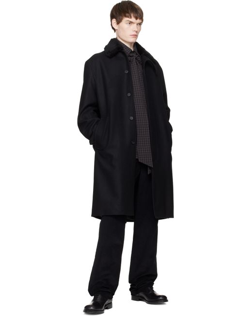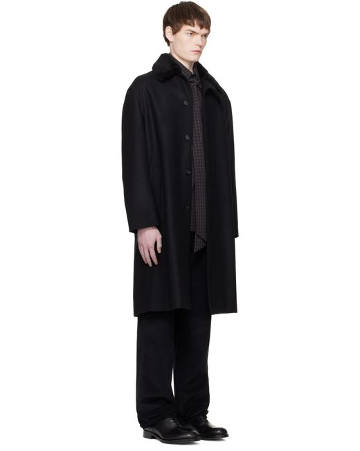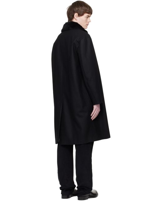 Wool-blend melton coat. · Detachable shearling trim at spread collar · Concealed button closure · Welt pockets at waist · Central vent at back hem · Full satin lining Supplier color: Black