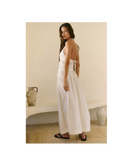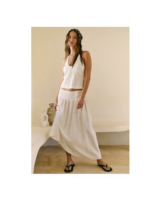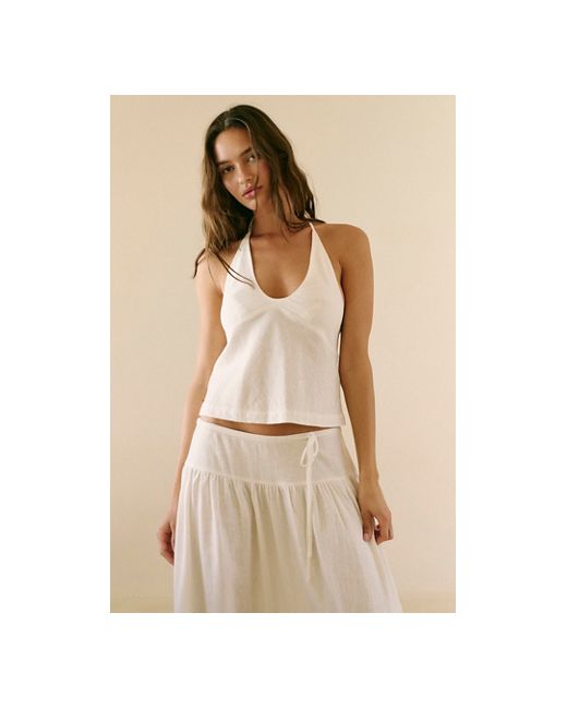 Stun wherever the sun takes you in this essential skirt set from free-est, featuring a backless halter top and billowy maxi skirt in a special linen blend for endless breezy styling. **Top:** * V-neckline * Adjustable tie at neck and back * Open back **Skirt:** * A-line * Elastic waistband * Tie detail at hip Sandshell Linen Skirt Set by free-est at Free People in Clean Ivory, Size: XS