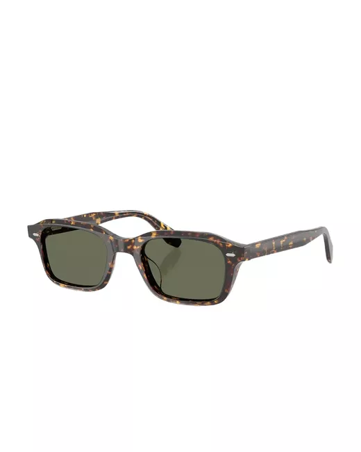 brown rectangle frame tortoiseshell pattern dark grey lenses subtle metal detailing These glasses come with a protective case.