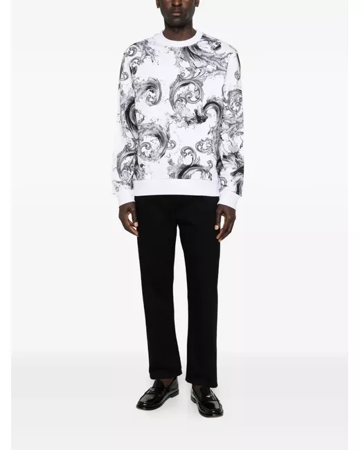 white/black all-over pattern round neck long sleeves ribbed cuffs and cuffs