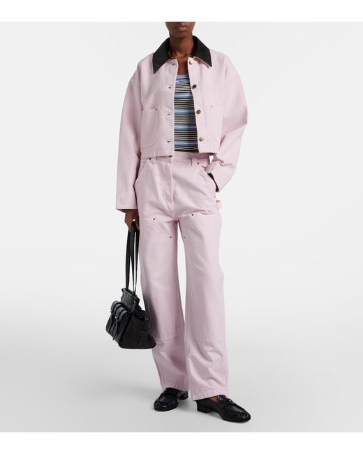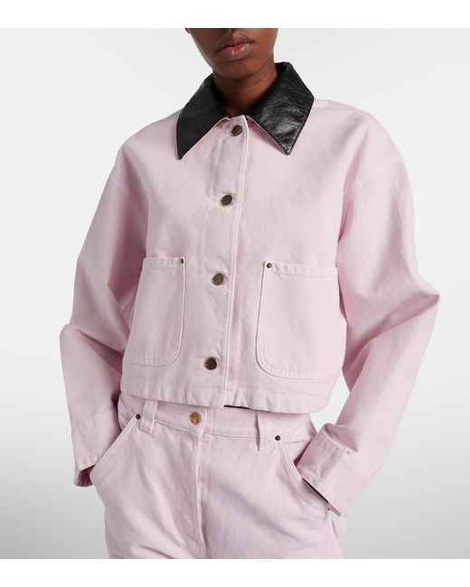 Material: 100% cotton. Care instructions: specialist clean. Made in Italy. Designer color name: Rosa. Trim: 100% goat leather. Contains non-textile parts of animal origin. Hardware color: bronze. Collar: classic (Straight point). Cuff: buttoned. Pockets: patch pockets. Closure: buttoned front. Cotton.