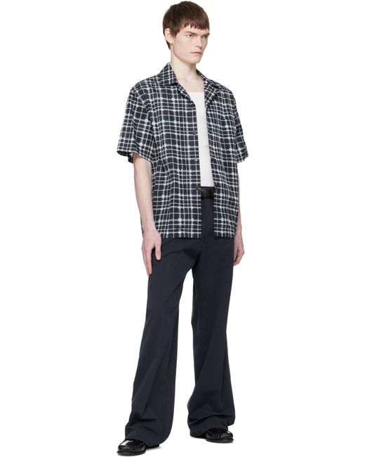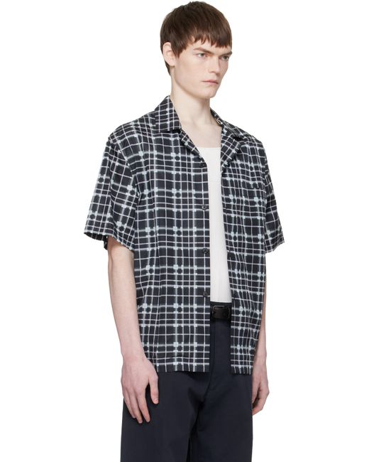 Technical poplin shirt. · Check pattern printed throughout · Open spread collar · Button closure · Patch pocket at chest · Tennis-tail hem Supplier color: Sky Blue/Black