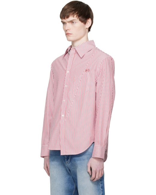 Cotton poplin shirt. · Stripes throughout · Asymmetrical construction · Spread collar · Button closure · Logo embroidered at chest · Patch pocket at chest · Shirttail hem · Pleated single-button barrel cuffs · Box pleat at back yoke · Mother-of-pearl hardware Supplier color: Red Stripe