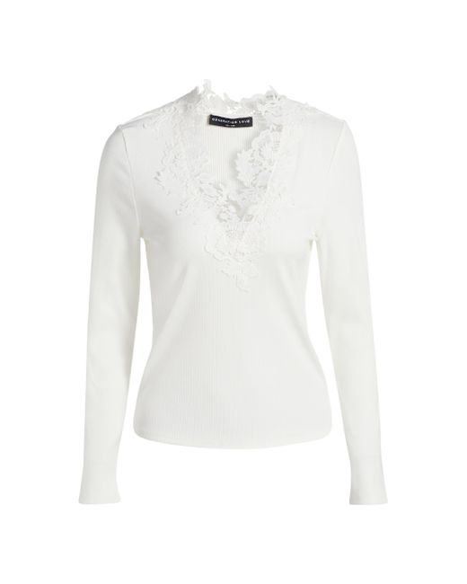Generation Love's Piper top is crafted of stretch rib-knit and detailed with a lace-trimmed V-neck. V-neck Long sleeves Pulls over 92% rayon/8% elastane Dry clean Imported SIZE & FIT About 23.5" from shoulder to hem Model measurements: 5'10" tall Model is wearing a US size Small. Contemporary Sportswear - Casual Separates > Generation Love > Saks Fifth Avenue. Generation Love. Color: White. Size: XS.
